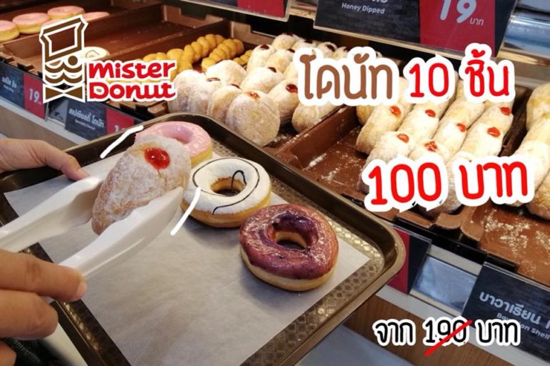 Mister Donut จัดโปรฯให้อิ่มกันได้ยกก๊วน โดนัท 10 ชิ้น ลดเหลือแค่ 100 บาท หารออกมาตกชิ้นละแค่ 10 บาท(จากปกติ 190.-)