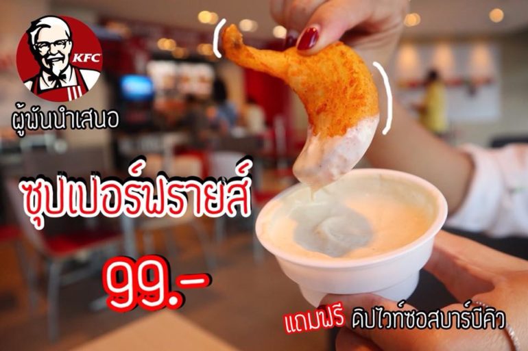 Food & Drink กรอบ อร่อย เต็มๆคำ เมนูใหม่ที่ต้องลอง KFC ซุปเปอร์ฟรายส์ มันฝรั่งแท้ 100% นำเข้าจาก USA หั่นเป็นชิ้นขนาดจัมโบ้เต็มๆคำ ทอดมาให้กินกันร้อนๆ ? เสิร์ฟมาพร้อมกับดิปไวท์ BBQ ให้จิ้มเพื่อเพิ่มรสชาติ ? ราคา 99 บาท ? วันนี้ – 7 พ.ย.นี้ ที่ KFC ทุกสาขา admonsale