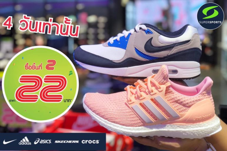 Shopping ?? ไปเลือกกันคนละคู่ ? โปรฯแรงๆจาก Supersports ซื้อรองเท้าคู่แรกในราคาปกติ คู่ที่สองจ่ายแค่ 22 บาท มีให้เลือก 5 แบรนด์ ทั้ง Nike Adidas Asics Skechers และ Crocs (เฉพาะรุ่นที่ร่วมรายการ) ? วันนี้ – 18 ส.ค.นี้ ? ที่ Supersports ทุกสาขา admonsale