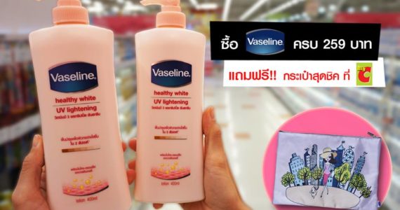 ซื้อผลิตภัณฑ์ Vaseline ครบ 259 บาท ? แถมฟรี!! กระเป๋าวาสลีนสุดชิค! ? และ ห้ามพลาดกับ สินค้าจาก วาสลีน แบรนด์อันดับ 1 เพื่อผิวกระจ่างใส ลดสูงสุด 33% ดั…