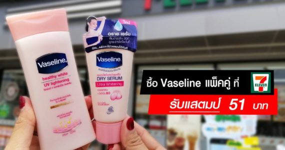 แถมรับแสตมป์ 7-11 มูลค่าถึง 51 บาท ?♀️ เพียงซื้อโลชั่นวาสลีน ขนาด 100/120 ml (ทุกสูตร) คู่กับ วาสลีน ดรายเซรั่ม สำหรับใต้วงแขน 30 ml (ทุกสูตร) ? รับแ…