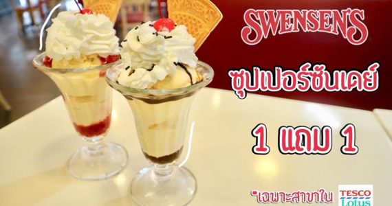 ? Swensen’s จัดโปรฯไอศกรีมซุปเปอร์ซันเดย์ ซื้อ 1 แถม 1 อิ่มอร่อยกับไอศกรีม 2 ถ้วย ได้ในราคาแค่ 109 บาท (จากปกติ 218.-) หารกันออกมาแค่คนละ 50 กว่าบาท ?…