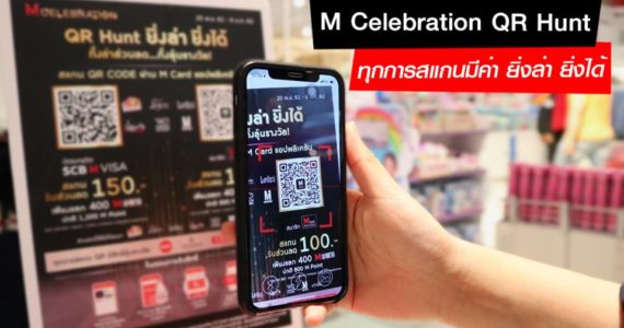 พบกับรายการ “M Celebration QR Hunt ยิ่งล่า ยิ่งได้” สแกน QR Code แลกรับสิทธิ์ส่วนลดภายในห้างฯ และร้านค้าในศูนย์การค้า ทุกการสแกน QR Code ล…