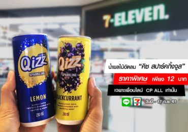 ลองหรือยัง Qizz Sparkling Juice เครื่องดื่มน้ำผลไม้ที่ผสมผสานความซาบซ่า มีให้เลือก 2 รสชาติคือ รสเลมอน และ รสแบล็คเคอแรนท์ ✨ พิเศษ !! ตอนนี้มีโปรร่วมกับ Line official 7-Eleven ลดราคาเหลือเพียง 12 บาท …