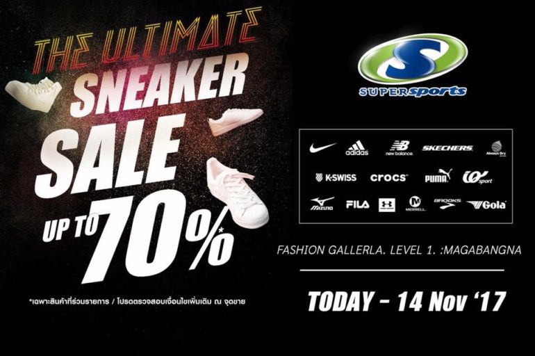 Shopping The Ultimate Sneaker Sale Adidas Nike New Balance Skechers Under Armour Crocs K-Swiss Puma Mizuno Gola Brooks Baoji Fila ฯลฯ Sale up to 70% วันนี้ – 14 พ.ย.นี้ ที่ชั้น 1 Mega Bangna admonsale